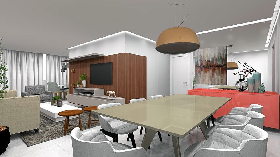 Projeto de decoração de interiores de um apartamento no Bairro do Panamby com 215 m2 em São Paulo. A decoração é sofisticada e aconchegante, leve e clara. A área social é toda integrada: cozinha, sala de jantar, living, home theater e varanda. Neste projeto, grandes soluções de decoração foram apresentadas, entre elas uma mesa de jantar em madeira bruta para 10 pessoas, a porta de correr proporcionando mais privacidade ao home theater e principalmente a adega para 700 garrafas no mezanino, que pode ser observada por todo o living. Nesta adega destacamos o vidro curvo, para dar leveza ao projeto. asdfasdf
